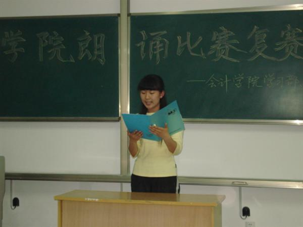 学习部、社团部举办的朗诵比赛复赛在明水校区隆重举行。与以往朗诵比赛不同的是,参赛选手们不仅朗诵诗歌,而且还献上精彩的个人才艺表演。这成为此次比赛的一大亮点。