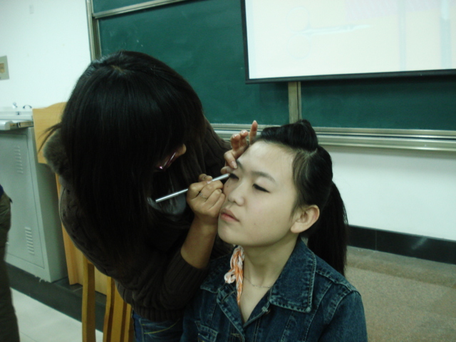 本次彩妆大赛决赛于3月24日7点在明水校区1202举行,参加本次决赛的8位选手均是在彩妆大赛初赛中有出色表现的选手。比赛分两个环节进行,一组上场进行现场化妆,一组在场下对白色T恤衫进行裁剪设计。比赛同时评委还和参赛选手进行现场互动,针对“修眉,画眼线”等化妆问题进行现场交流。心灵手巧的化妆师们用一把把画笔,一把剪刀,一个个小挂饰将女性美勾勒的淋漓尽致。
