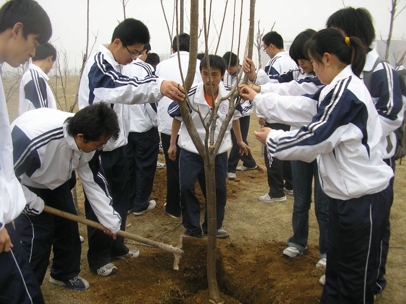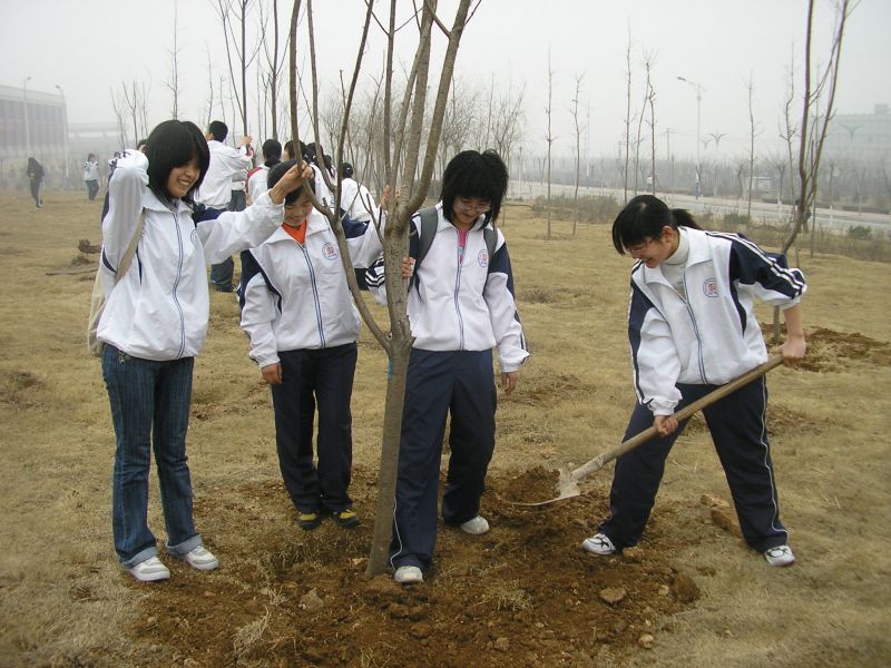 开幕式结束后,明水校区10个成人网 的同学们随即到凯旋门前植树。成人网 志愿者协会和承然环保协会的成员们积极参与到活动中来。培土、蹋实、浇水,看似简单的劳动做起来其实并不容易,学校的校工们在一旁给予亲切指导。最后,同学纷纷在自己植好的树前合影留念。