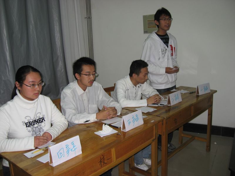 最终,第一轮反方(“行而后知”),正方(“博学之必先明辨之”),第二轮正方(“网络加强了人际关系”),反方(“善行才是真善”)获胜。相信2008级的辩手在以后的比赛中能够获得锻炼,提高自己。后续比赛我们继续关注。