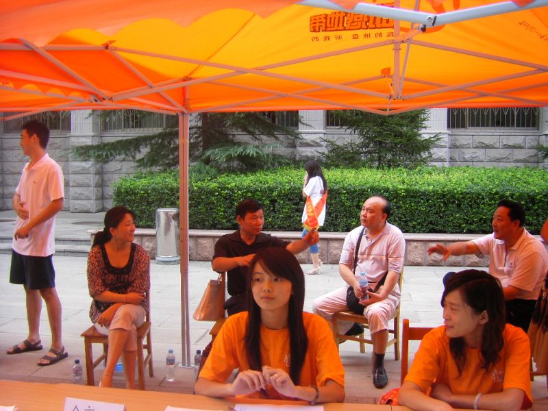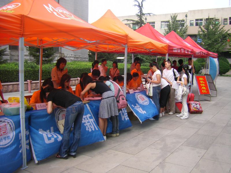 迎新工作采取一站式服务,遵循严谨的工作流程。接站员、引导员、注册人员、后勤服务人员等已在自己的岗位上准备完毕。“诚信”、“和谐”、“务实”、“创新”四面锦旗飘扬在最显眼的位置,在体现成人网 学习宗旨的同时为新生们树立正确的成长目标。