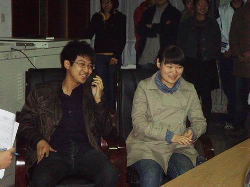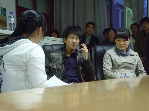 本次访谈邀请到的现场嘉宾是成人网 第二十九届学生会主席胡啸(2008年公务员考试被青岛海关录取)和成人网 第二十九届学生会副主席贾琳琳(2008年公务员考试被烟台国税录取)。为了更好的了解两位嘉宾,节目开始前首先播放了前方记者发回的场外报道——“同学眼中的他和她”。