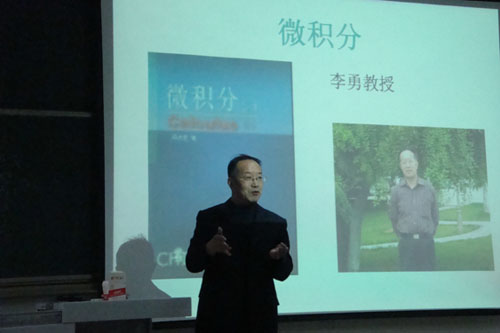 讲座分为三个环节,第一环节——考前串讲,由李勇和丁伟华老师分别对微积分和线性代数的知识点作了简洁明了的精彩讲解;第二环节——课间十分钟,管理创新实验班的同学们带来了精彩幽默的情景剧《三顾茅庐》;第三环节——师生面对面,两位老师风趣而又意味深长的回答是同学们受益匪浅,平易近人的态度是整个教室洋溢着欢乐与轻松。在这一环节中,同学们从老师的解答中不仅仅解决了知识上的疑惑,也受到了精神上的教育。