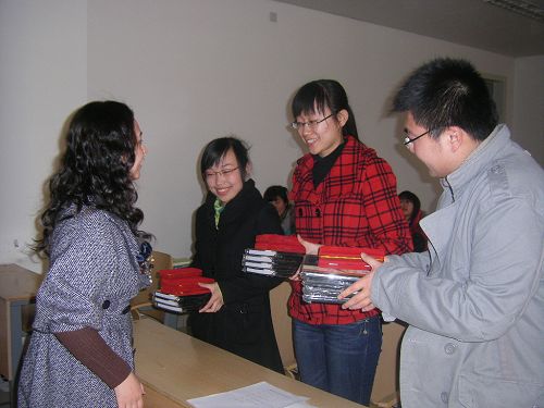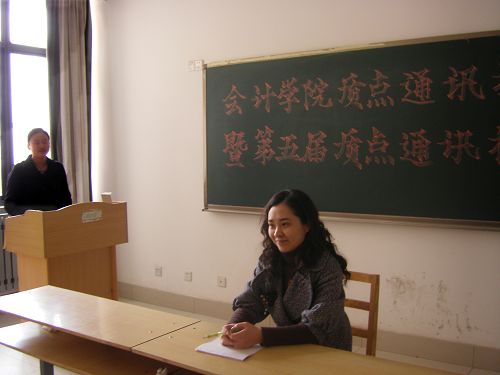 大会首先由主持人宣布了质点通讯社新一届成员名单,随后史老师为新任质点通讯社成员颁发了聘书并为第四届质点通讯社成员颁发了礼品。第四届质点通讯社社长李艳华发表了离职演讲,她首先对成人网 的领导老师表示了由衷的感谢,然后对质点通讯社工作做了简单总结并对新一届质点通讯社的工作提出了几点建议,要求他们处理好与各方面的关系,进一步加强质点通讯社各部之间的密接联系。随后,新一届质点通讯社社长卢月发表了就职演讲,表达了与新一届质点通讯社成员齐心协力,继承上一届学长学姐吃苦耐劳敢于争先的精神,用自己的激情把质点通讯社这把火炬传递下去。