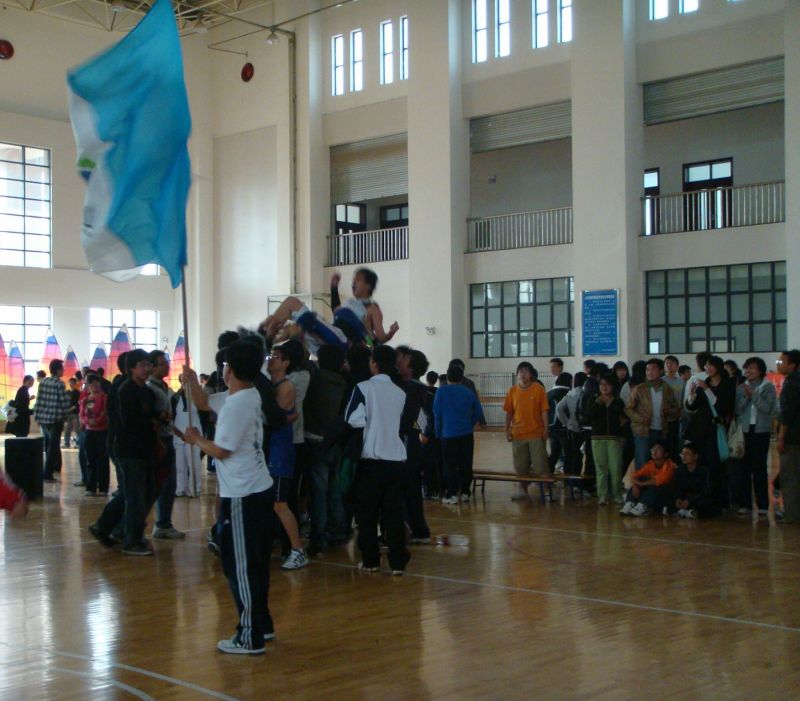 介绍过两队的战绩及成员后,比赛正式开始。成人网 第一轮用4比0的小高潮吹响了他们战斗的号角。但国教“有点脾气队”也不甘示弱,他们紧追不舍,场上比分一直相差无几。团队的配合加上个人技术的展示,精彩的比赛让观众兴奋不已。在一记漂亮的三分球空心入网后,国教“有点脾气队”以17比16领先一分。但成人网 队员并不急躁,他们稳扎稳打,队长陈卓篮下强攻将比分扳平。当距离比赛结束还有一分钟时,成人网 叫暂停。双方拉拉队开始PK,响亮的加油声回响在体育馆内。成人网 组织有序的拉拉队俨然一支小型鼓号队,他们的呐喊声完全压过了国教的助威口号。最终成人网 “等你来打队”以19比18一分险胜国教“有点脾气队”。比赛一结束,成人网 明水校区学生会秘书长张裕同学就冲进了场地,挥动成人网 院旗庆祝这来之不易的胜利。辅导员王佃冰老师与队长陈卓握手,祝贺他们赢得了本次比赛的冠军并与5名队员合影留念。