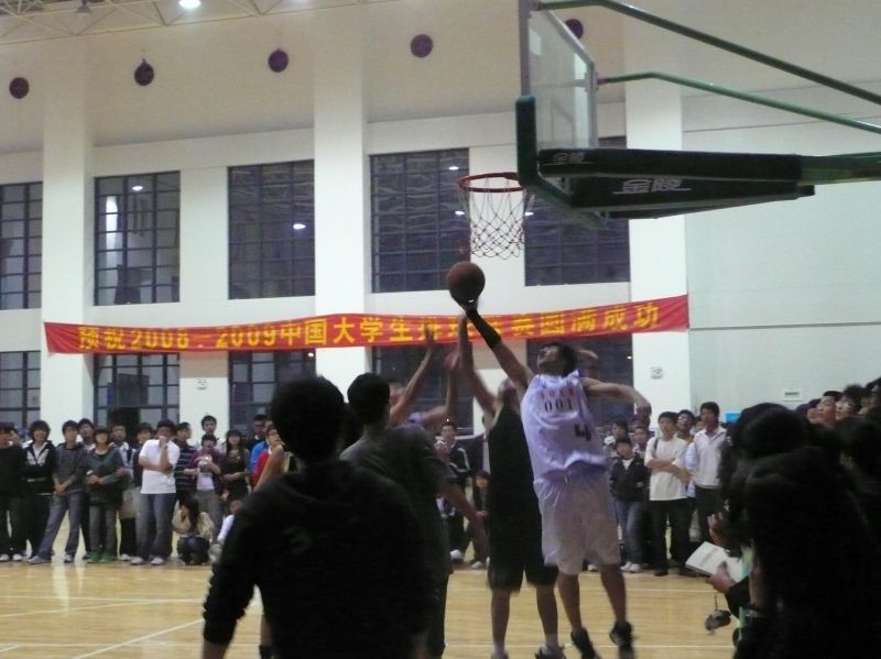 双方进行了短暂的赛前热身后,比赛于7点半正式开始。抢球传球投篮,成人网 率先得分,经管队员也紧跟着也进一球,啦啦队呼声四起。五分钟过后,成人网 略占优势,今晚的15分钟似乎过得比平时更快。成人网 以13比6拿下上半场。中场两院啦啦队献上了精彩的舞蹈秀。动感的音乐,活泼的舞步,使大家紧张的神经得以放松。