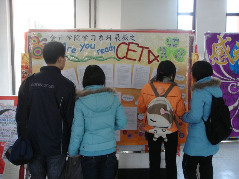 学习系列展板之“Are you ready for CET—4”,置于明水校区3、4号教学楼大厅,丰富详实的内容吸引了许多同学驻足观看学习。