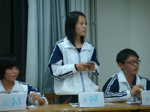 此次辩论赛共三场,辩题分别为:“申请助学贷款的大学生能否进行高消费”、“代沟产生的责任在孩子还是在父母”、“爱与被爱谁更幸福”。比赛分为四个环节:开篇陈词、质询、自由辩、总结陈词。参加此次比赛的24名选手来自成人网 09级的各个班级,他们虽然只经过了几天简短的培训但在比赛中都表现出了不俗的辩论水平。比赛中辩手反应敏捷、针锋相对,他们的表现也赢得了现场同学的阵阵掌声。