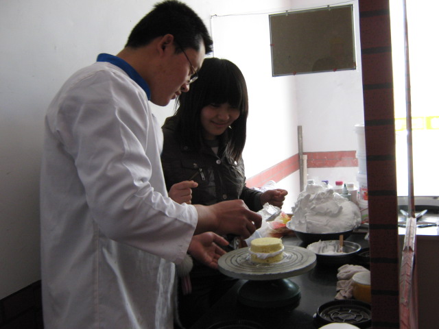 此次活动的地点选在了章丘市芙蓉大道的“克莱尔蛋糕店”。在成员进入“克莱尔”蛋糕店后,他们首先观摩了蛋糕制作的过程,在细心地观察之中熟记每个操作环节,为接下来的蛋糕制作环节做好充足的准备。随后大家开始了自己动手制作蛋糕的过程,看似简单的一个蛋糕制作过程,在同学们的手中却出现了各种各样的问题,有的同学奶油挤得不均匀,有的同学的修饰花做不出来,但在蛋糕师傅的悉心指导和大家的努力下,同学们的蛋糕都逐渐成型并顺利的完成了。看着自己的劳动成果,大家都感到格外的甜蜜。