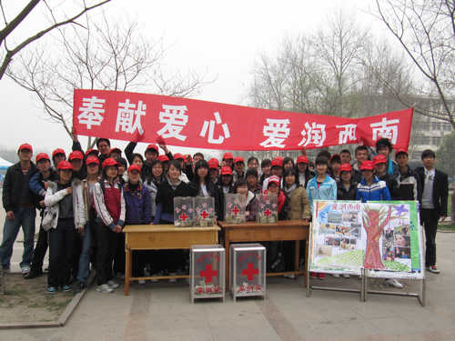 标有“奉献爱心,爱润西南”的横幅在空中飘扬,映衬在每个志愿者辛劳却又充满欣慰的脸上。截止上午十一点,志愿者们总共为灾区筹集到1804元,此次募捐款项总数将交由章丘市红十字会以山东经济成人网 的名义统一捐赠至西南灾区,希望能帮助旱区人民早日解决干旱之渴。