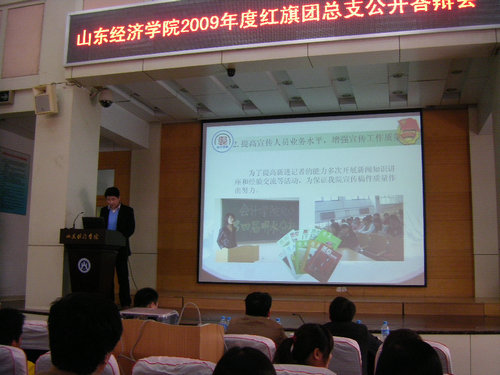 4月27日下午,我校2009年度红旗团总支公开答辩会在校本部三号报告厅举行。团省委学校部、省学联副秘书长徐加金,山东大学团委副书记傅艺娜,山东师范大学团委副书记于晓明,山东大学经济成人网