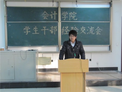 本次交流会共分为演讲和交流两个环节。在演讲环节,09级优秀学生干部、优秀学生以及10级的部分班委对他们的工作进行演讲。其中,资评0902班班长关雨阳同学在自律、控制情绪、协调工作等多方面对10级各位班委提出建议,提醒各班干部应设身处地的考虑问题,广交朋友,并积极向他人学习;会计0901班团支刘悦同学则在摆正态度、下达通知的方法以及班委之间的交流等细节方面发表了看法,建议10级各班干部要以身作则,不断改进工作方法,提高工作效率;随后全院唯一国家奖学金获得者张博同学用幽默诙谐的语言向大家传授学习、工作两不误的秘诀,在09级演讲结束后,10级学生干部代表孙畅、刘心洁、李智慧同学进行了发言,简述了自己从开学到现在的工作经历,谈及了其中感悟和收获。在交流环节,10级学生干部大胆抛出自己工作中遇到的问题,而09级各代表也针对提问给出了真诚的答复,并提出建议。