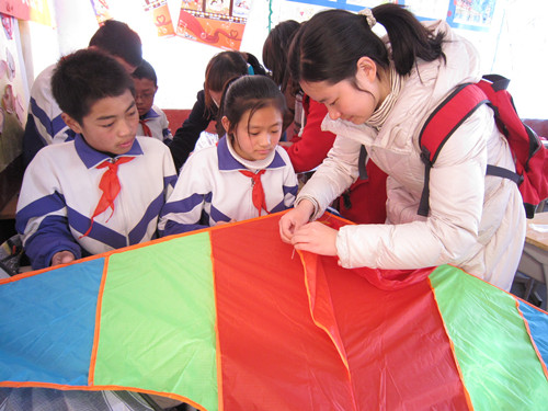 此次捐书仪式在百泉小学六年级一班的教室里举行。在活动伊始,先由百泉小学的田校长介绍了该学校的设施和师资情况,更有济南音乐电台Music 88.7的杜总监讲述了举办此次“小桔灯爱心读书行动”的初衷。随后,由成人网 秘书处负责人作为学生代表将签有众多会计学子名字的条幅挂在墙上,表达了成人网 学子对百泉小学学生们的关心与希冀。与此同时,更有一些学习用品及50本精选的书籍作为赠品捐送给百泉小学。百泉学生为表感激之情,将代表希望的红领巾工整的系在成人网 代表的颈部。短暂仪式过后,来自Music88.7电台的DJ为同学们主持了精彩的互动班会,他们用动听的声音讲述了风筝的历史,并与孩子们一起将扎起的风筝放飞在湛蓝的苍穹中。
