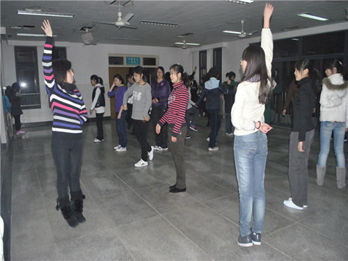 文艺部和女生部联合举办啦啦队女生部分选拔在明水校区三、四号宿舍楼连廊大厅顺利举。共有来自成人网
