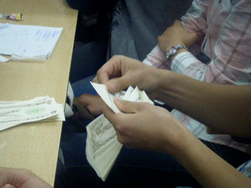 此次系列活动以“预支财富 尊重信用”为主题,分为卡贴设计大赛和信用卡应用与大学生理财知识竞赛两部分,旨在普及信用卡知识,合理安排经济活动。活动伊始,主办方现场展示了在18日至20日卡贴设计大赛中脱颖而出的优秀作品。温馨俏皮的卡通、唯美浪漫的风景、时尚前卫的人像等淋漓尽致地体现了选手们别出心裁的设计以及极具创意的巧思。在赏心悦目的作品欣赏后,知识竞赛比赛环节正式拉开帷幕。本次知识竞赛共有三个环节:点钞大赛、知识竞答、绝地反击。第一环节点钞大赛中,参赛选手表现出极佳的动手能力与点钞技巧,令在场观众叹为观止。在之后的知识竞答中,同学们更是将所学理论知识与生活实践经验相结合,融会贯通,举一反三,既增长了与日常生活息息相关的信用卡常识,又提高了专业知识水平,可谓一举两得。而最后的绝地反击环节中,参赛代表队的积极应答、热情参与使现场气氛火速升温,将活动推向高潮。经过激烈角逐,财管1003、财管1004代表队斩获此次比赛冠军。