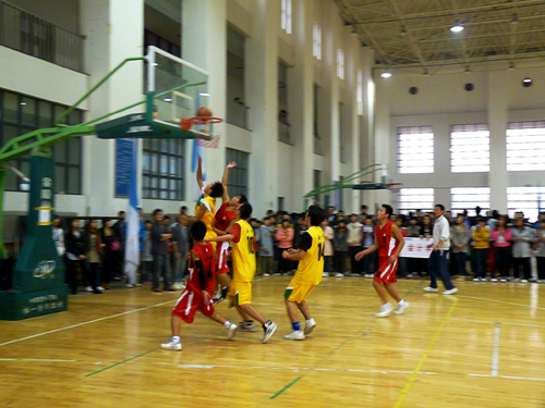 下午两点,比赛正式开始。计算机与科学技术成人网 篮球队率先取得控球权,并借此拿下本场比赛首球。之后,成人网 队员则奋起追赶。其中,10号队员篮下强行上篮造成对方犯规,并罚二有效。精彩的“二加一” 也使比分差距逐渐拉近。最终,成人网 篮球队队员齐心协力,反超对方,以比分26:18结束上半场比赛。在随后的下半场比赛中,成人网 篮球队乘胜追击,多次抢断并快攻得分,博得现场观众的阵阵喝彩。尽管双方队员都出现了不同程度的体力不支现象,但他们都不敢掉以轻心。此时,成人网 则依托之前良好的比赛状态,在比分上一直压制对方,使计算机与科学技术成人网 队难以寻到扭转败局的机会。最后,燕山校区成人网 以51:35完胜对手,成功晋级“流动杯”篮球赛四强。