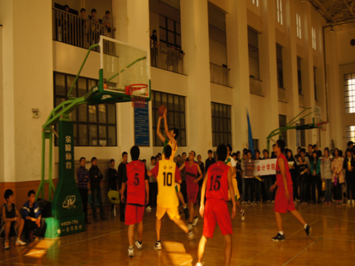 (筹)“流动杯”篮球赛揭幕战在明水校区篮球场激情开赛。首场比赛由燕山校区成人网