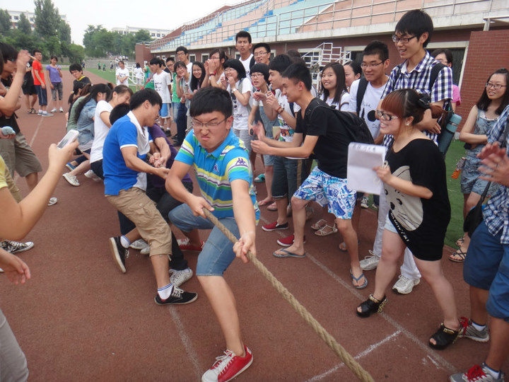 下午五点十分,比赛在足球场正式拉开序幕。比赛还未开始,场上参赛队员便个个摩拳擦掌,场下拉拉队更是不惧炎热呐喊助威。晋级赛中的所有队伍实力都不同凡响,这也为整场比赛的结局平添了几分悬念。由财务管理1102班和财务管理1103班进行的冠军争夺战将比赛推向了高潮。双方队伍势均力敌,赛场上每一个参赛队员都用尽全力,两旁的拉拉队也喊着整齐响亮的口号不断为参赛选手加油鼓劲。最终财务管理1102班凭借场上的坚持与团队的合作成功夺魁。此外,获得本次拔河比赛第二名到第四名的班级分别是财管1103班,会计1105班和审计1102班。