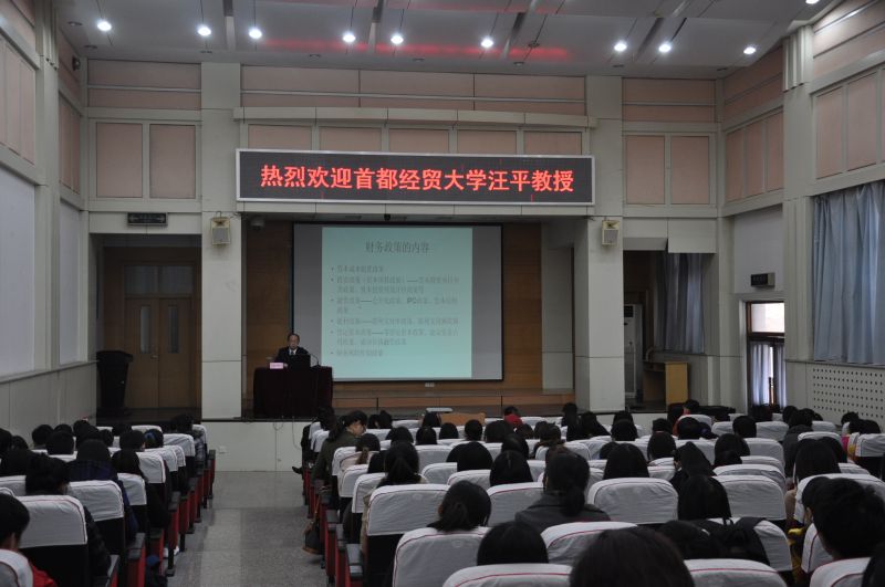 “燕山论坛”邀请到首都经贸大学博士生导师汪平教授做首场讲座。成人网 院长王爱国、部分教师代表及全体研究生同学出席了报告会。
