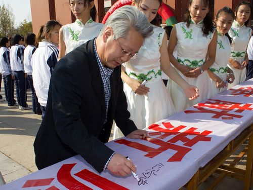 上午十时许,活动正式开始。由成人网 200余名新生组成的方队整齐划一的集合在一起,共同迎接党的十八大的召开,祝福新财大的发展。首先,由学生党员代表侯晓光发言,他表示:作为一名大学生党员,在党的十八大召开在即,又恰逢新财大挂牌之初,有责任与义务肩负时代重托,刻苦钻研,奉献党和国家、奉献学校。随后,在“歌唱祖国”的背景音乐下,在场领导写好祝福语,与学生们一同放飞手中的气球。同时,学生方阵变换成“十八大”字型,共同表达了对党和学校的美好祝愿。最后,副校长胡文波在印有“喜迎十八大,奉献新财大”的横幅上首先写下“心向党,跟党走”的话语,并与其他学校领导一同带领学生在横幅上签名。至此,“喜迎十八大,奉献新财大”系列活动启动仪式圆满结束。当天,山东教育电视台、章丘电视台等媒体均赴现场对此次活动做了专题报道。