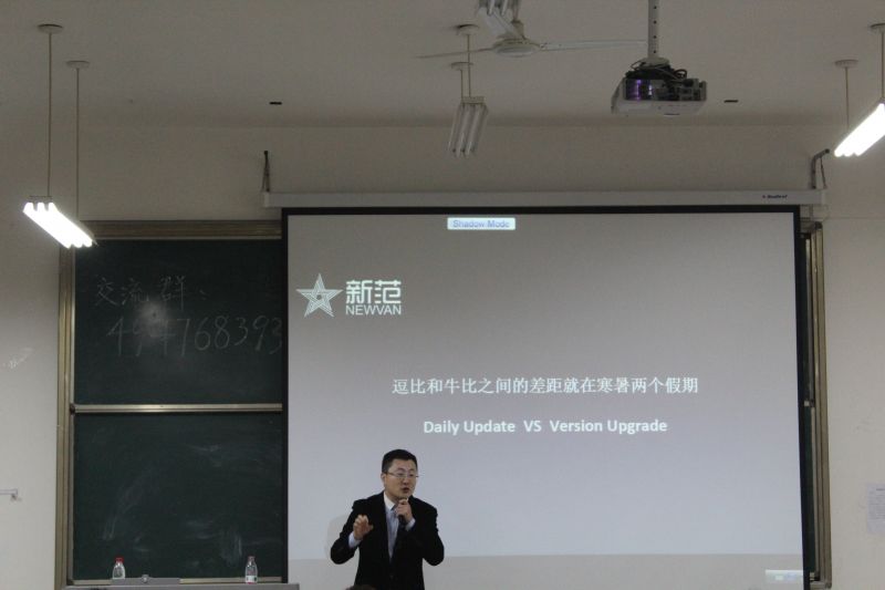 、新范教育CEO毕晓光职业生涯分享会在明水1104教室举行。此次分享会旨在让同学们了解金融行业的动态,并对自己今后的职业生涯有进一步地规划。现场座无虚席,气氛十分热烈。