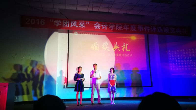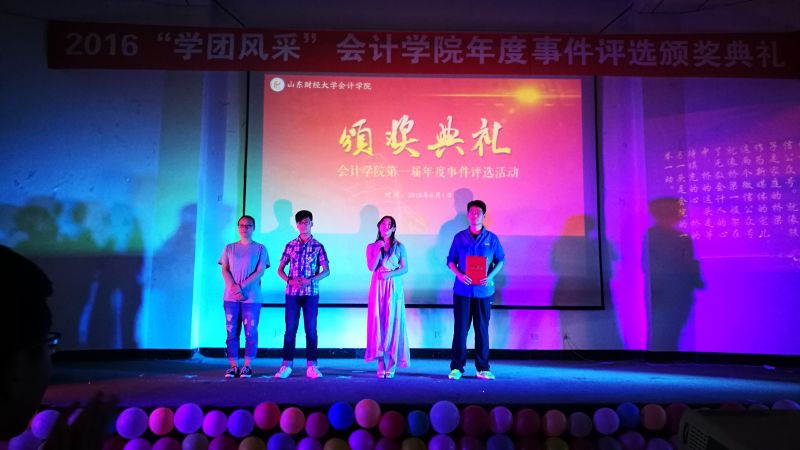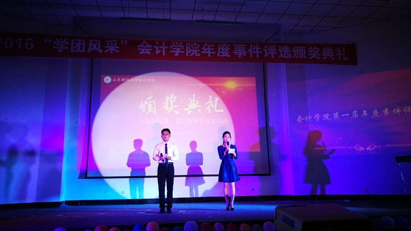晚六点半,本次颁奖典礼正式开始。琴声飘逸,舞姿曼妙,由成人网 文艺部编排、“金鸡杯”校园舞蹈大赛获奖作品《玉生烟》用清丽古雅的蒹葭之美为颁奖仪式拉开序幕。主持人简要介绍到场嘉宾后,开始播放二十个候选年度事件的介绍视频,每个事件风采各异,感动相同,深深吸引着在场所有人的目光。伴随着颁奖视频和真挚感人的颁奖词,获奖年度事件代表依次上台领奖并发表了各自的获奖感言。 “成人网 质点通讯社”和“成人网 会计学缘”两个微信公众号的工作人员真诚的说:“感谢老师与同学们的支持,感谢一起工作的兄弟姐妹,我们会继续努力。”纯朴的话语透露着对未来的坚定信念,赢得了热烈的掌声。荣获“中国大学生自强之星”提名奖的李洪霞同学用乐观自信的话语,向所有人传递出笑对生活风雨的正能量,“命运对我没有不公平,年轻时能够在苦难中摸爬滚打,使我成长的更好!”献礼2015级迎新晚会的沙画表演代表李雨阳说道:“每天上百遍的练习至今记忆犹新,为确保设备完善,我们每个人提前做了许多功课”,向我们真切的诠释了台上一分钟,台下十年功的深刻含义。2012级国际会计实验班团支书周晓坤代表荣获“山东省五四红旗团支部”和“全国共青团示范团支部”称号的学霸班向她的学弟学妹们分享了促进班级更好发展的经验与感想,用敢拼、敢闯、勇拼搏的会计人精神为财大的每个班级指引着方向。“人心凝聚、弘扬班风、共同配合对于一个班级的发展至关重要,端正态度、踏实专注、努力坚持是学习的法宝。”献礼2015年毕业典礼的成人网 合唱团负责人马欣萌动情的说“在期末考试之际,合唱团成员能够风雨无阻按时参与排练令人十分感动,展现出身为会院人的凝聚力。走出去,我们代表的是成人网 ,要拿出成人网 的魄力与风采!”话语中透露着作为合唱团成员的自豪与骄傲,传递着对未来的美好展望。青春不散场,我们在路上,“会计杯”篮球比赛展现了永不言败的精神与锲而不舍的耐力,“这场用生命的毅力和耐力,用生命的速度和技巧所展示的比赛,凝聚了团队精神,表现了意志品质。”体育部负责人汪志栋的一番话将体育精神诠释的淋漓尽致。“聚是一团火,散是满天星”的星火志愿者协会荣获“山东省青年志愿者服务先进集体”称号,其优秀骨干马东飞用最真切的感受传递着星火的精神理念。“我们希望能够像火苗一样感染更多的人参与公益,将热情与希望带给支教的孩子们。”漫漫前路,星火人定会凭借努力照亮未来。一场“家文化”晚会歌舞了青春飞扬,演绎了会院一家亲。学生会副主席安炳文与副秘书长王辉说道:“家文化晚会最大的魅力在于调动了学生会的每位成员,增强了学生会成员间的凝聚力,让我们意识到这场晚会被称为‘家文化’而不是‘学生会文化’的独特内涵。”时光悠扬,岁月漫长,“家文化”晚会的温情将陪伴会院人继续前进。将目光放于台上,使荣耀照彻希望,令感动留在唇间,让思悟荡在心头,校园心理情景剧《目光》荣获山东省高校心理剧短片DV大赛二等奖,主创人员向观众们讲述着他们的故事,“短剧的成功,依赖于剧组所有人的团结、用心和毅力,他们都是整部剧不可或缺的一部分。”导演姚红宇对剧组的真情告白展现了剧组成员间的深厚友谊,期待他们更精彩的表现!榜样的推举见证楷模的辉煌,榜样的评选点燃人们心中的激情与梦想,这,就是“榜样的力量”年度人物评选活动,吕晓燕老师领奖时讲述了举办活动的初衷,回忆了记忆深刻的榜样人物,“这些年轻人身上彰显出来的奋发向上、锐意进取的精神,感动着我与每位会计学子的心。”评选活动将传承下去,让更多心怀理想的有志青年、品学兼优的学习楷模、积极奉献的公益先锋走进会院学子的心。在颁奖典礼中,穿插了精彩的节目表演,财管1503徐静怡为大家带来的《锦绣前程》,赢得现场阵阵掌声;吕晓燕老师与审计1503范存尧以及沙画团队共同呈现的沙画诗朗诵表演《与你同行》感染着在场的每位观众;会计1502班带来的小合唱《奔跑》彰显出青春活力,展现出大学生昂扬的精神面貌。