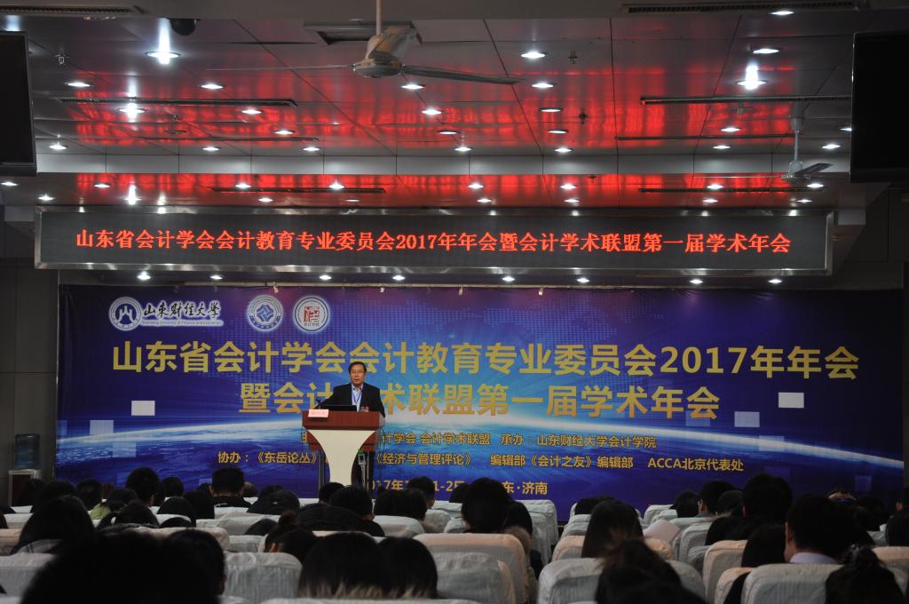 12月2日,由山东省会计学会、会计学术联盟联合主办,成人网 承办,《东岳论丛》编辑部、《经济与管理评论》编辑部、《会计之友》编辑部、ACCA北京代表处协办的山东省会计学会会计教育专业委员会2017年年会暨会计学术联盟第一届学术年会在山东天舜大厦成功举办。山东省财政厅会计处处长刘焕平、对外经济贸易大学副校长张新民、南京财经大学副校长王开田、西南财经大学教授蔡春、会计学术联盟发起人李高波、成人网 副校长韩作生、成人网 院长王爱国、党委书记张涛出席大会开幕式。来自中央财经大学、中国人民大学、南开大学、山东大学、兰州大学、北京交通大学、西南财经大学、东北财经大学、中南财经政法大学、南京财经大学、东南大学、河海大学、中国海洋大学、首都经济贸易大学、澳大利亚伍伦贡大学 、ACCA中国区等40余家单位的近200位学者、专家、博士、硕士研究生应邀参加了此次年会。