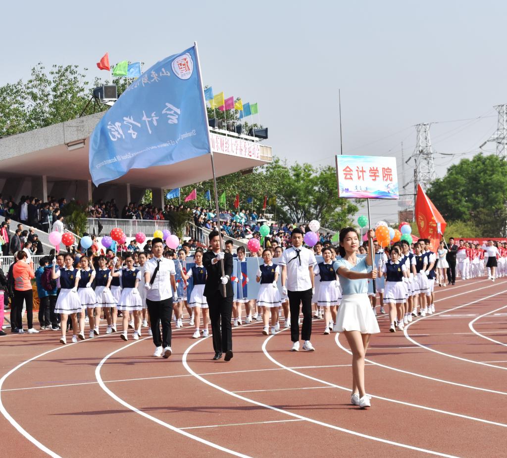4月27日,成人网 2018年度春季运动会在舜耕校区体育场拉开帷幕。上午八点半,伴着雄壮激昂的《运动员进行曲》,我校国旗护卫队高擎着五星红旗,迈着整齐的步伐率先入场。