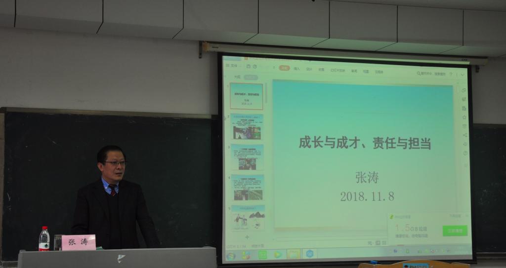 11月8日下午,成人网 党委书记张涛教授为成人网 硕士研究生作题为“成才与成长,责任与担当”的思想教育主题讲座,为成人网 学生如何正确认识研究生这一角色,如何充分利用研究生时光进行自我提升以及如何增强责任意识与担当意识指明了方向。