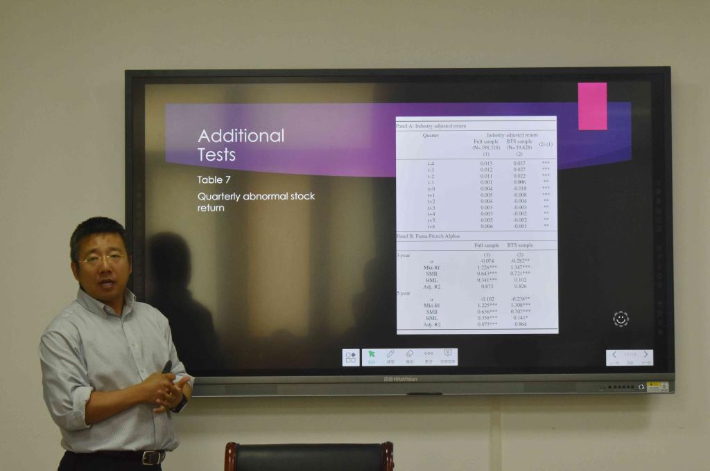 7月16日下午,爱荷华州立大学商成人网 金融系高磊教授应成人网 邀请,在燕山校区逸夫楼Y309作题为《Leverage-constrained investors, asset prices and corporate financing decisions》的学术报告。讲座由孙文刚院长主持,成人网 部分老师以及2018级部分硕士研究生聆听了讲座。高磊教授主要致力于金融市场、资产回报预测、实证公司财务、公司监管、成人网、文本分析和机器学习等研究,且将于2019年9月份任职于美国证监会。