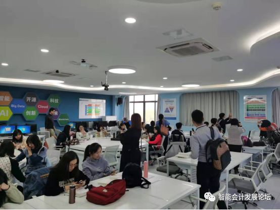 天津科技大学来访同仁参观学生在“智能会计”实验室上课情况