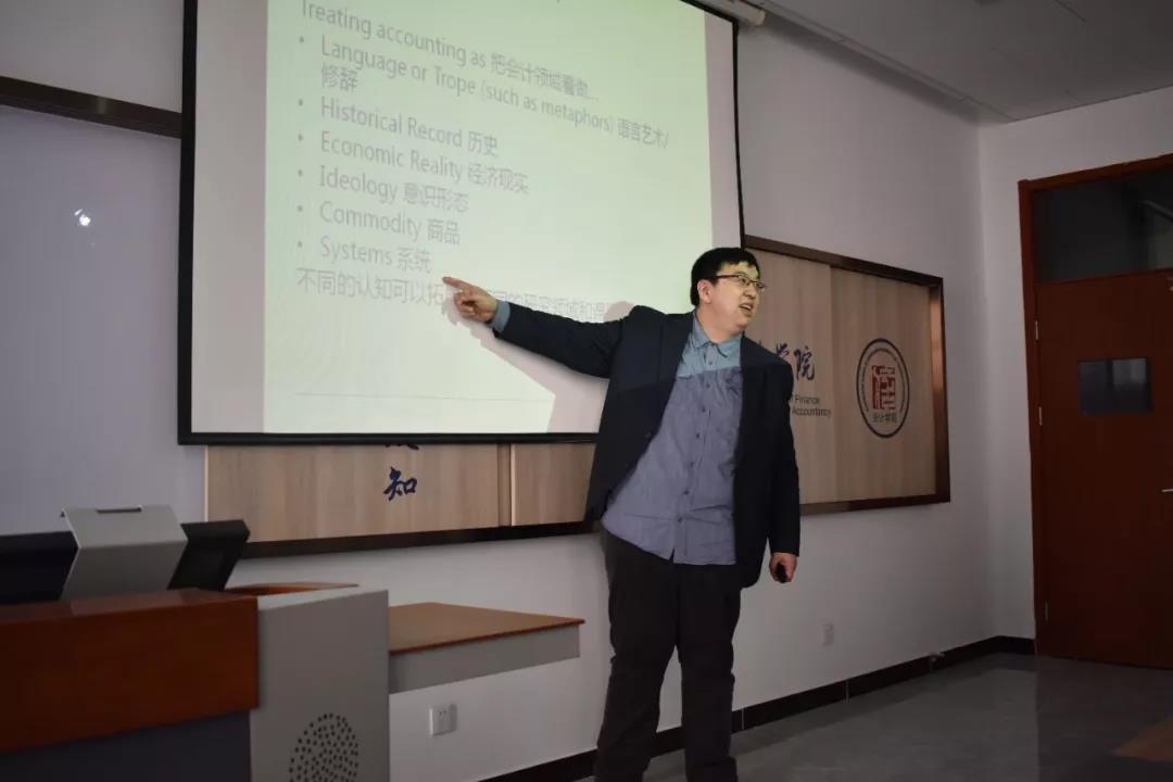 最后,黄博士列举了上述四个方面的经典文献,并重点讲解了Brier and Chua的《The role of actor-networks and boundary objects in management accounting change: a field study of an implementation of activity-based costing》这篇文章,得出:定性研究突出研究的独特性、人文性,体现会计研究的多重影响,从而可以帮助我们理解不可预测的管理者行为,了解企业和社会文化对会计的影响的特点。