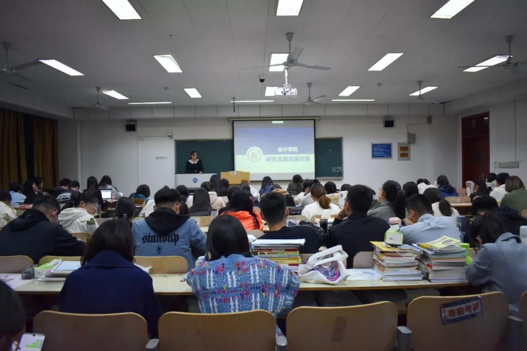 17级审计学硕王蕾用切身经历对研究生生活进行了总结。她认为,“沟通”很重要,多与导师和同学交流,取长补短;机会和兴趣也很重要,要把握机会,寻找自己的兴趣点并发挥兴趣优势。此外,她强调,要提前做好计划,适当放松自己,保证工作的高效完成。最后,王蕾将“寻找,鼓励,相信,坚持”八个字送给同学们,祝愿大家一切都好。