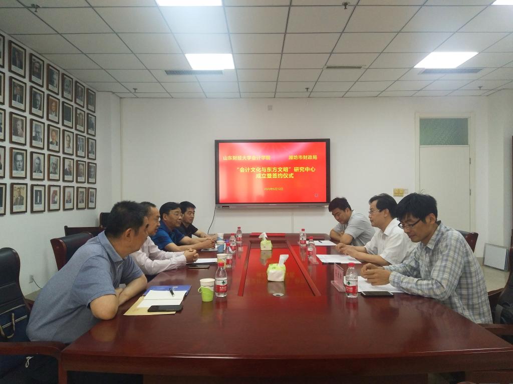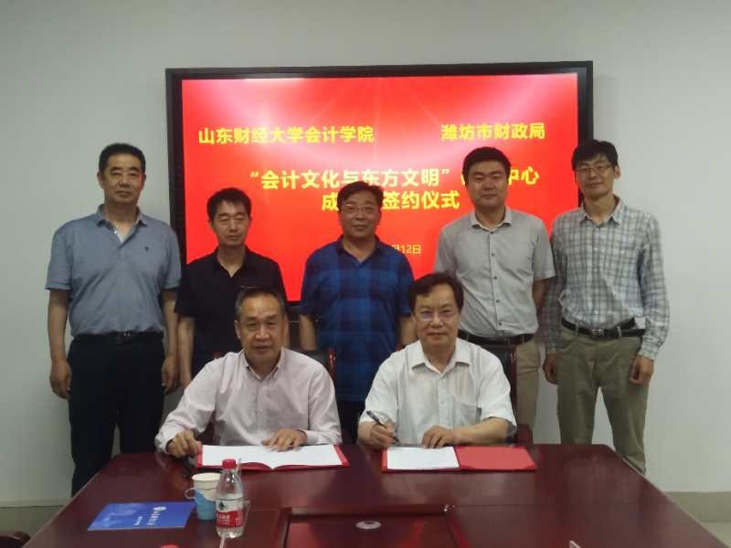 6月12日上午,由成人网 、山东会计博物馆(筹)和山东省潍坊市财政局联合成立的“会计文化与东方文明”研究中心签约仪式在成人网 燕山校区举行。潍坊市财政局副局长王献之、山东会计博物馆筹建处主任王增堂、会计科科长周曰海、山东会计博物馆筹建处副主任赵良奎,以及成人网 王爱国、副院长孙文刚、会计思想史研究所所长吴大新出席签约仪式。仪式由孙文刚主持。
