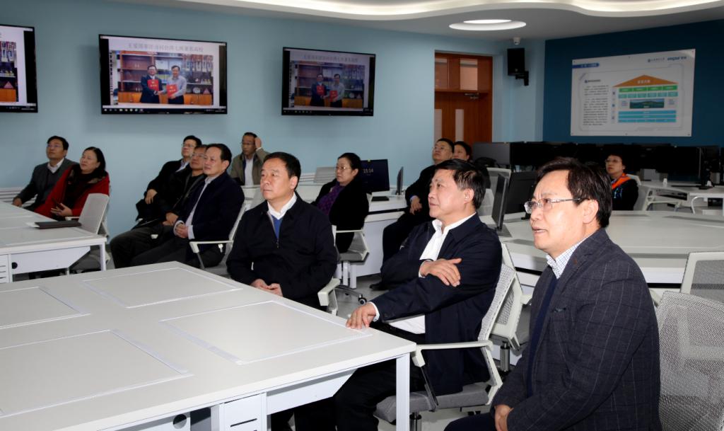 王爱国向各位领导简要介绍了在新技术背景下传统会计转型发展的必要性和可行性,详细介绍了成人网 智能会计实验室建设的初衷、功能设计和发展前景,并介绍了成人网 智能会计人才培养方案的具体内容、实施情况以及未来行动思路。