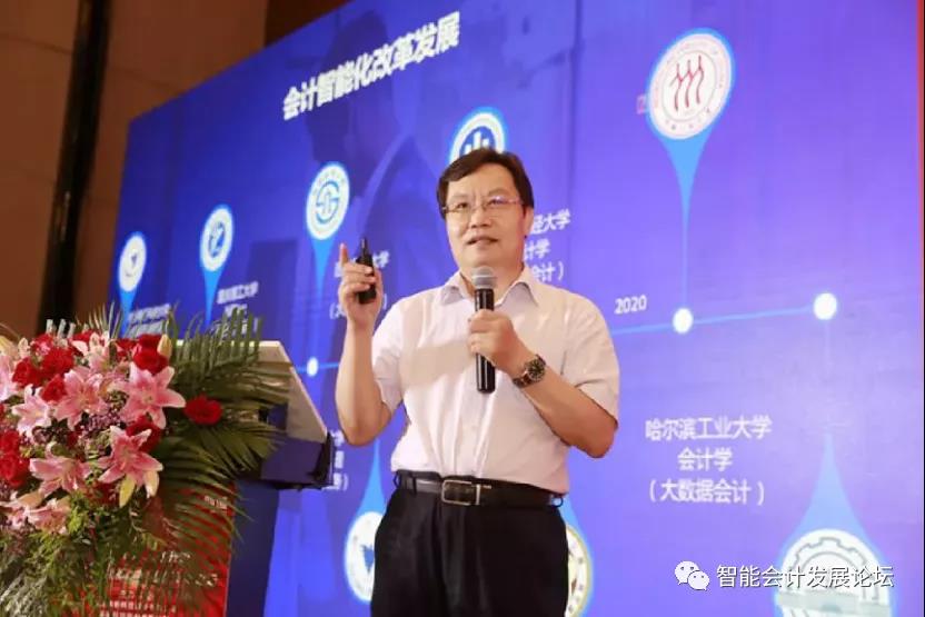 王爱国认为:智能会计是现行会计转型发展的方向,是现代会计与现代信息技术紧密结合的产物,是新技术迭代发展所带来的商业模式、生产模式、管理模式颠覆式变革对会计新要求的结果。如果给智能会计下一个定义的话,建议把它定义为:是一种以“数字经济”为前提、“业财融合”为基础、“财务共享”为平台、“人工智能”为支撑所形成的满足经济管理数据分析和辅助决策信息需要的人机共生、协同进化、管理赋能的会计管理活动。他进一步指出:智能会计是会计拥抱技术的一种必然结果,是在人工智能等新技术支持下会计科学与计算科学相互结合的产物,是一种交叉学科,具有“计算会计科学”属性,是一个至少包括信息形成系统、决策支持系统、管理控制系统、行为调节系统等内容的会计管理生态系统。因此,在智能会计未来发展中,一要坚持智能会计是一种维护产权制度、明确利益关系的基础性制度保障这一会计学的经济制度本质,二要把握智能会计定将有助于物质(业务)流、价值(资金)流、信息(数据)流深度融为一体(三流合一),有助于财务会计、成本会计、管理会计、财务管理这些分门别类的会计整合为“大会计”(当然也可以称之为“大财务”),有助于数字化、数据化、信息化、智能化、智慧化“五化”全方位深层次融合的三大发展趋势。同时,王爱国向与会400余位嘉宾介绍了成人网 智能会计人才培养的基本做法、主要成果和未来设想。尤其是详细介绍了高等学校智能会计系列教材——《智能会计概论》《智能会计信息系统》《智能财务共享》《智能财务决策》《智能财务分析可视化》等的设计思路、逻辑体系和具体内容。
