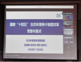 生态环境部董战峰研究员作了题为“国家十四五生态环境审计改革思路与重点”的主题报告。董战峰研究员分别从“十三五”生态环境审计进行评估、生态环境审计制度改革形势与需求、生态环境审计制度改革思路与框架以及生态环境审计制度改革与创新政策建议四个方面进行了报告。首先针对评估“十三五”生态环境审计,董战峰研究员从其意义、国务院重视程度、存在问题、运用的环境审计方法讲到探索专项审计,逐步健全自然资源资产审计法规制度,并提出存在的问题。其次针对生态环境审计制度改革形势与需求,讲解了发挥环境审计对国家生态文明建设的促进作用、充分发挥审计对“十四五”生态环境的监督功能以及协调推进高质量发展与高水平保护的有效抓手,从这三个方面全面讲述了审计制度改革形势与需求。随后,董战峰研究员细致的刻画出审计改革制度的思路,简单有效的做出生态环境审计制度改革框架,让人对其有了更深入的了解。最后,提出生态环境审计制度改革与创新政策建议,为推进改革与发展提供新思路。