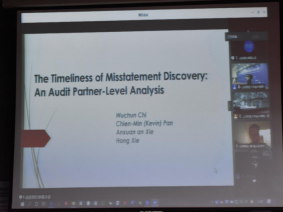 台湾政治大学会计学系戚务君教授作了题为“The Timeliness of Misstatement Discovery: An Audit Partner-Level Analysis”的主题报告。其研究的问题是找到有误述的企业,观察具有何种审计师特性能够尽早发现问题,并且将财务报告重述。在变量方面,其将审计师任期这一连续变量分解为三组,其中第一个四分位数以下的为短任期,第三个四分位数以上为长任期。其研究发现,审计师任期越长,发现问题的时间越长,即审计质量较差;行业专长会让我们尽早发现问题;客户重要性并不影响审计质量;签证的家数越多,会延迟发现问题的时间,即审计质量较差;审计质量较差是一个系统性问题,审计师若在其他客户中发现误述现象,那么在目前的客户中,其误述到重述的时间较长。最后,戚教授鼓励在座师生积极培养专业思维,推动审计会计职业向更高层次发展。