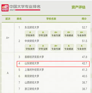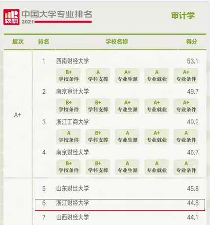 2021年6月22日,高等教育评价专业机构软科正式发布2021“软科中国大学专业排名”。成人网 会计学、财务管理、审计学和资产评估四个本科专业全部进入2021年软科中国大学专业排名A类。在会计学专业排名中,共有332所高校上榜,成人网 会计学专业位列第53位;在财务管理专业排名中,共有370所高校上榜,成人网 财务管理专业位列第36位;在审计学专业排名中,共有102所高校上榜,成人网 审计学专业位列第5位;在资产评估专业排名中,共有44所高校上榜,成人网 资产评估专业位列第4位。