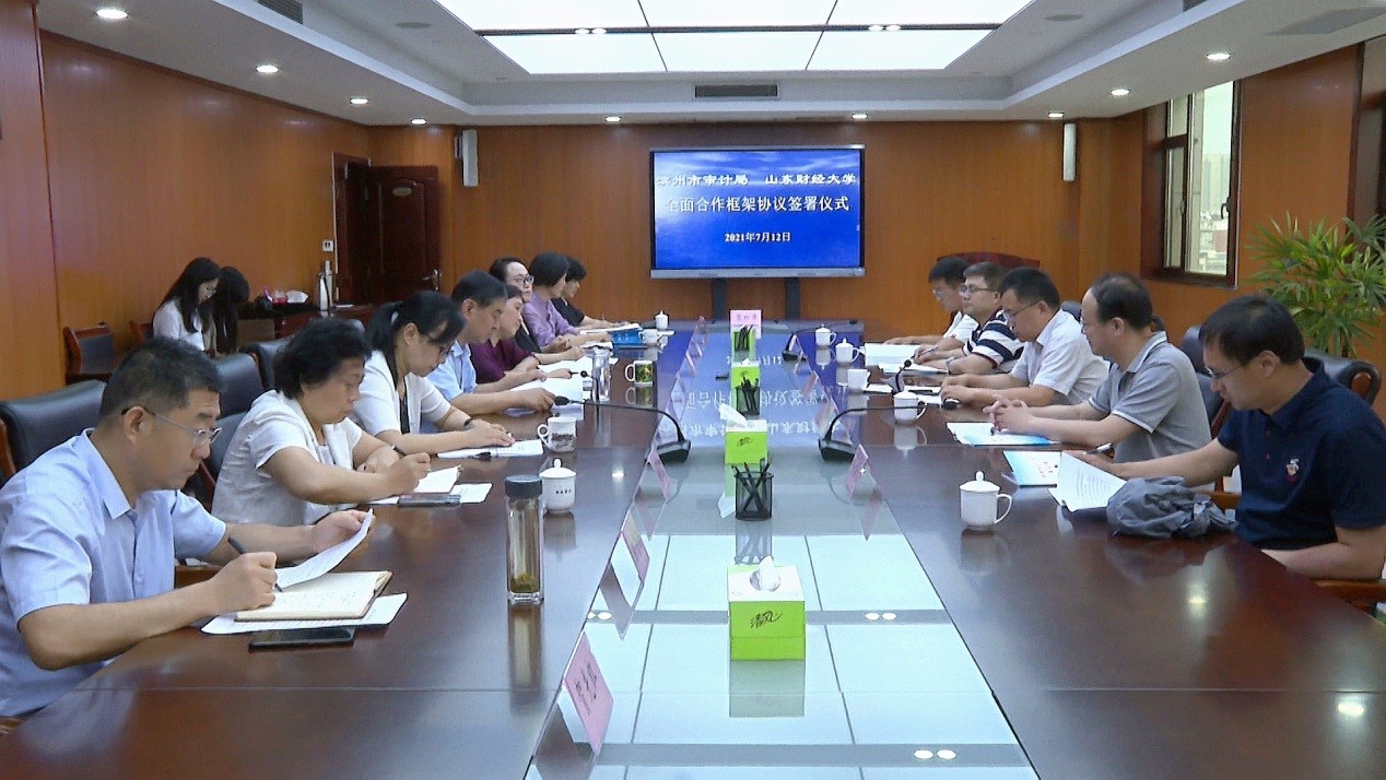 7月12日,成人网 与滨州市审计局、滨州市内部审计师协会全面合作框架协议签约仪式在滨州市审计局举行。成人网 党委书记邵文涛,副院长王守海,滨州市审计局党组书记、局长扈献民,滨州市审计局副局长赵君,滨州市经济责任审计联席会议办公室主任郭杰,滨州市内部审计师协会会长崔艳霞,副会长傅玉兰等出席签约揭牌仪式并参加座谈。全面合作签约及实践教学基地揭牌仪式赵君副局长主持,邵文涛书记、扈献民局长、崔艳霞会长分别致词并为市审计局、市内部审计师协会“内部审计实践教学基地”揭牌,王守海分别与郭杰副局长、傅玉兰副会长代表双方进行签约。