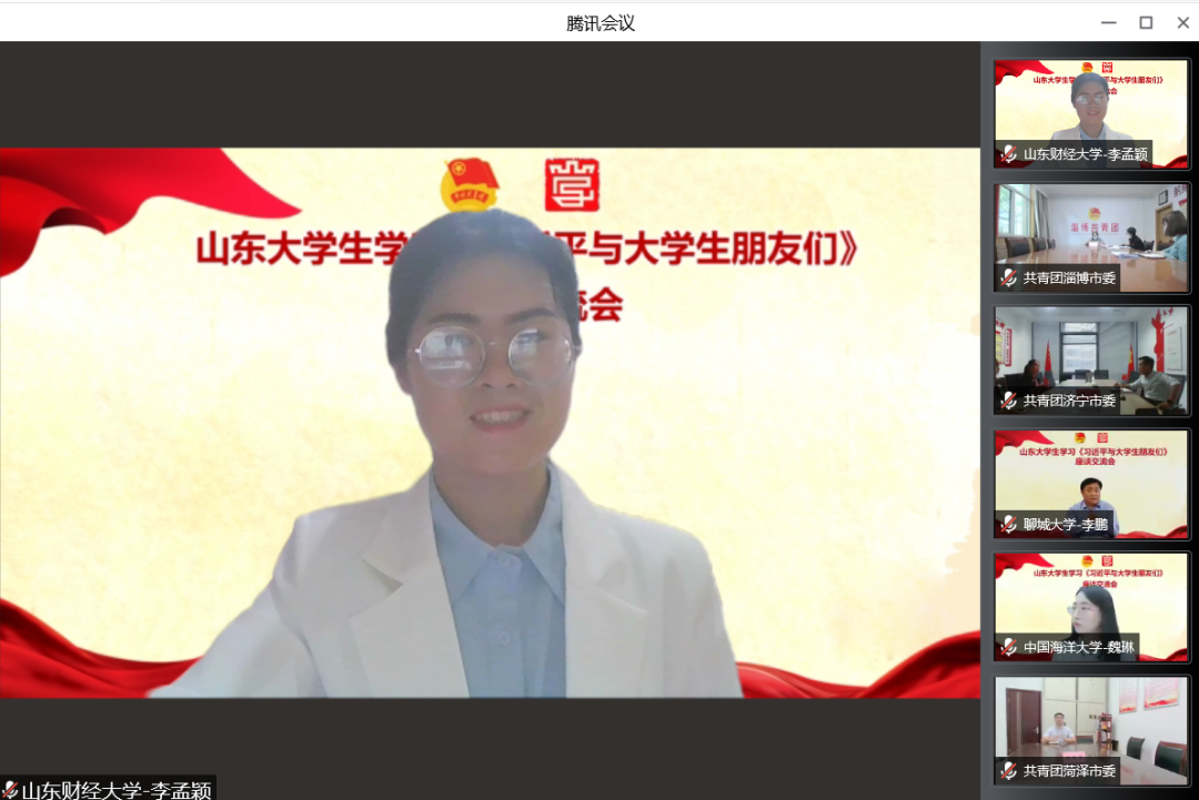 4月27日,团省委召开山东大学生学习《习近平与大学生朋友们》线上座谈交流会。团省委副书记尚胜波同志出席会议并讲话。我校第23届研究生支教团队长、成人网 2021级研究生李孟颖代表我校作了交流发言,向全省青年分享了学习成果与体会。