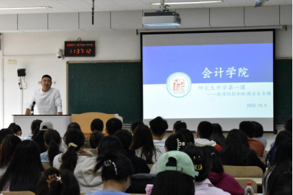 此前,为了强化学生安全意识,做好成人网 研究生新生的思想教育和安全教育工作,更好地帮助研究生新生适应新的学习生活环境和新的自身定位,成人网 党委副书记、研究生辅导员郑大伟为新生讲授“研究生开学第一课”。课上,郑大伟强调当前新冠疫情防控正处于常态化阶段,校园疫情防控仍一刻不能放松,为确保全体师生安全,同学们应当遵守学校防疫管理制度,提高防疫意识、做好个人防护。同时他强调,同学们要进一步强化安全意识,严格遵守学校安全管理规章制度,营造安全稳定的校园环境。最后,他鼓励同学们要制定好研究生期间的学习和实践规划,充分利用时间,通过学习不断提升认知高度和思考深度的能力,努力实现人生价值。