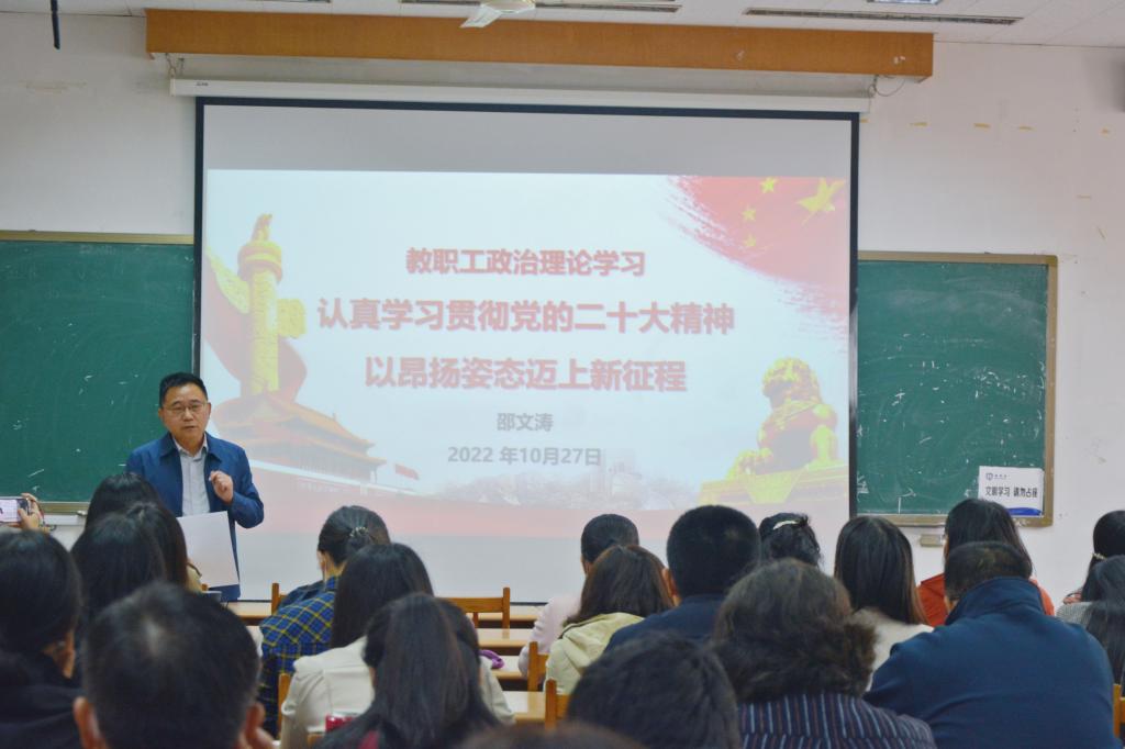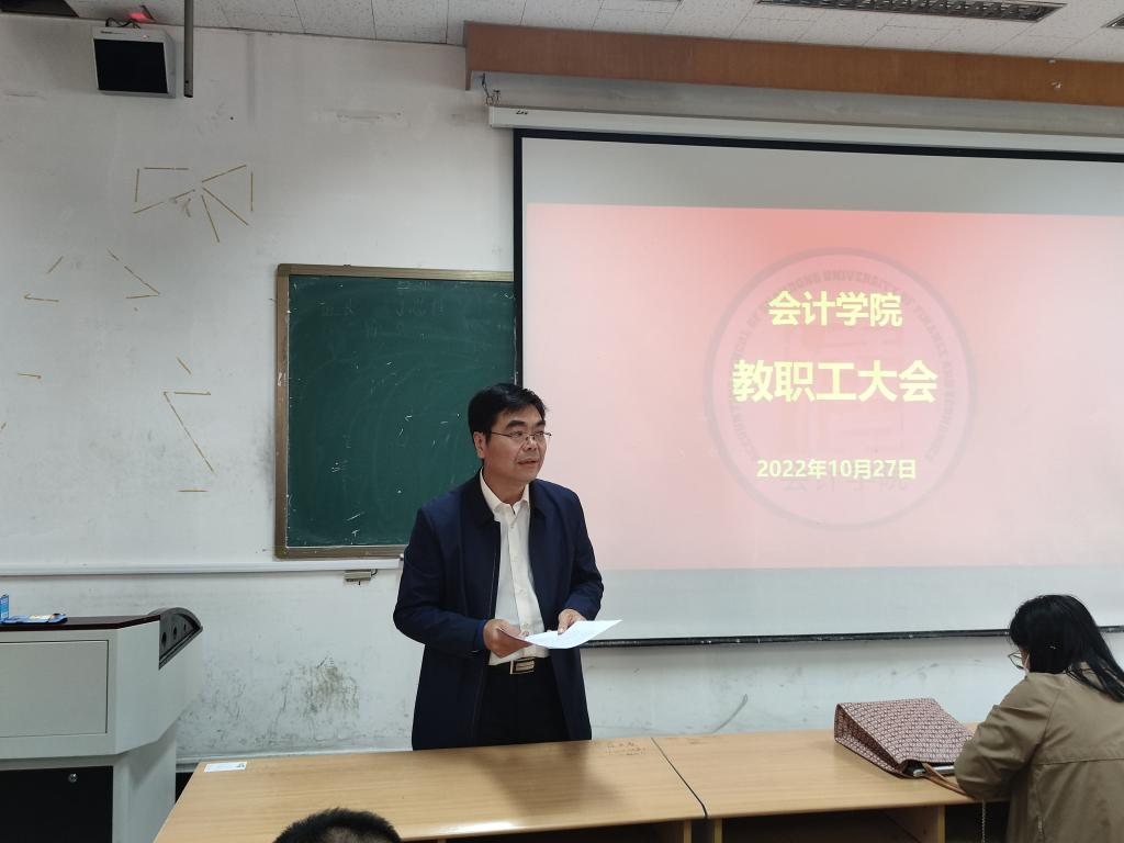 10月27日下午,成人网 在燕山校区2101教室召开全体教职工大会。成人网 全体教职工参加,会议由党委书记邵文涛主持。
