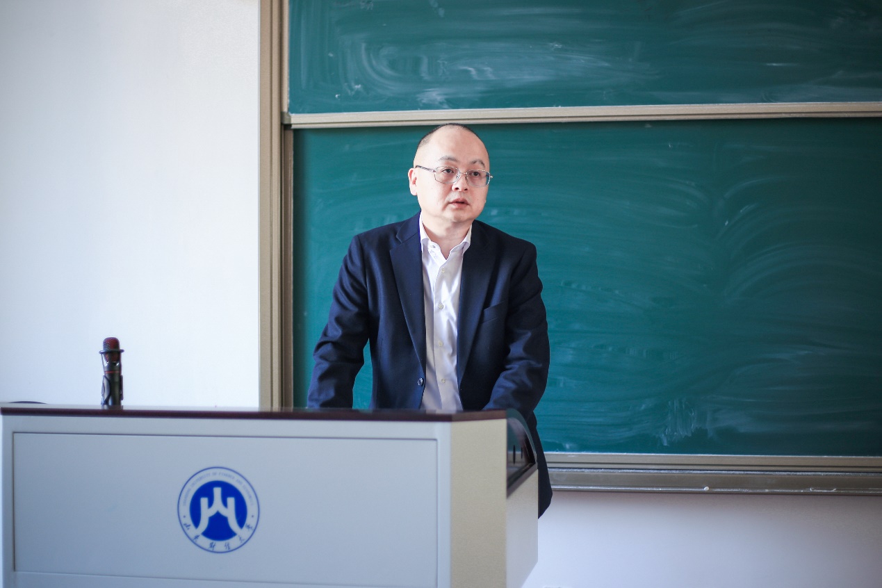 颁奖仪式结束后,北京中企华评估有限责任公司山东分公司总经理尤建宏先生进行了题为《漫谈评估》的报告。他以自己在资产评估行业打拼的经历为例徐徐展开,对同学们未来发展寄予厚望。尤建宏先生还通过幽默诙谐的故事介绍资产评估相关知识,帮助同学们理解资产评估中的基本概念和方法。他还对同学们未来的职业发展和规划提出了宝贵的意见和建议。
