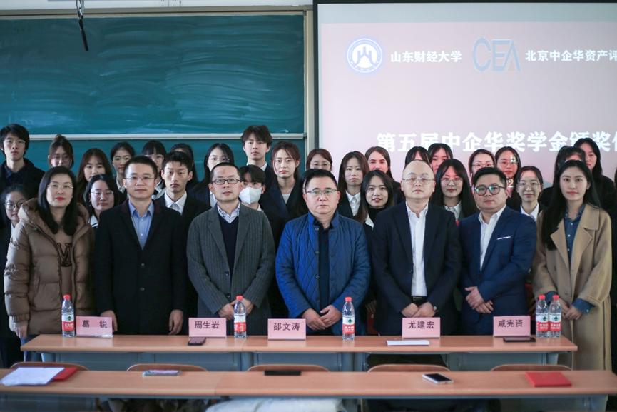 2023年3月2日(周四)下午,第五届“中企华”奖学金颁奖仪式在圣井校区举行。北京中企华资产评估有限责任公司山东分公司总经理尤建宏、副总经理周生岩、总经理助理戚宪资、成人网 党委书记邵文涛、资产评估系主任葛锐、成人网 资产评估系副主任郭晓日及部分师生代表出席仪式。颁奖仪式由葛锐主持。