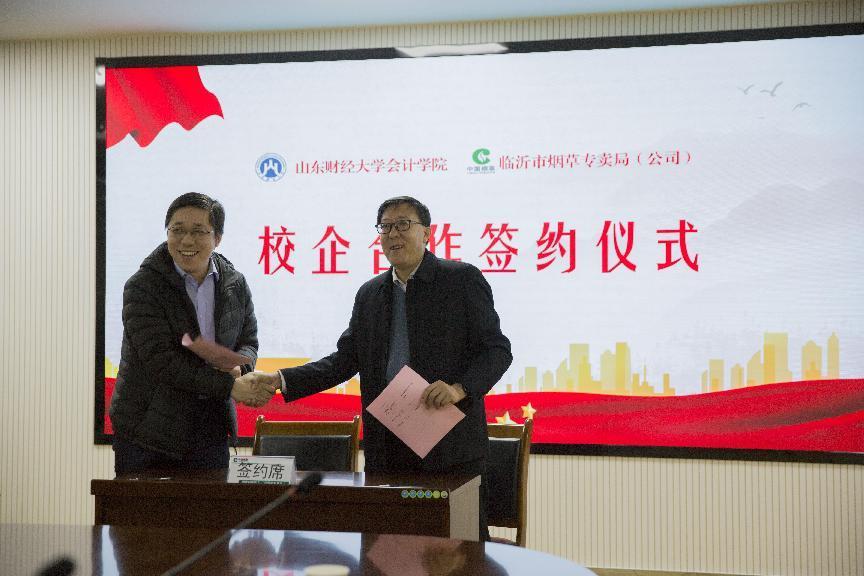 临沂市烟草专卖局(公司)财务科科长韩跃龙与成人网 院长助理韩跃签署合作协议