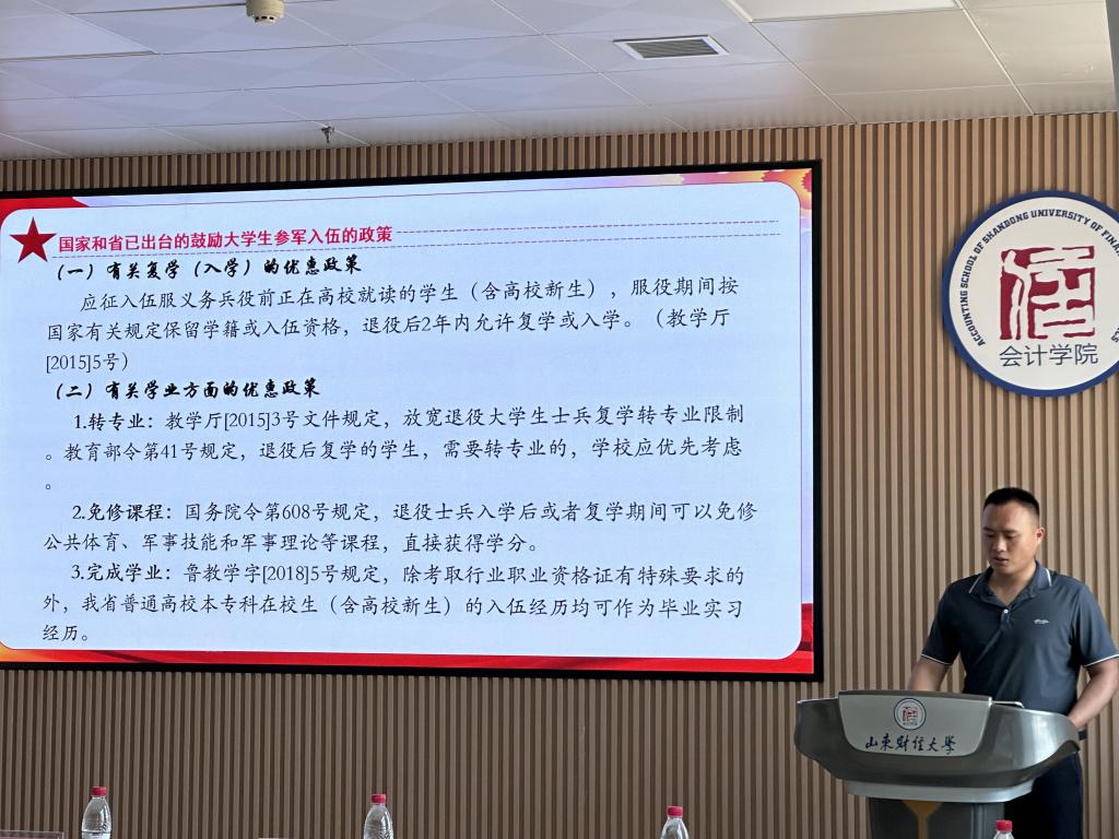 宣讲会上,吴德安对参与活动的同学们做了参军意愿调查,与同学们分享了自己的军旅经历,结合新颁布的《征兵工作条例》,全方位、多角度向毕业生宣传介绍今年大学生征兵报名时间、对象范围、基本条件、入伍流程、优待政策方面内容,对同学们关心的军旅生涯规划、军队待遇及军人职业发展给出了指导性建议。