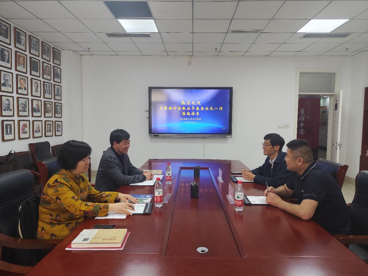 4月19日,立信会计出版社社长、总编华春荣,学术出版中心主任张翠芳一行来成人网 举行硕士研究生招聘并与成人网 师生座谈交流。成人网 党委副书记郑大伟、副院长吴大新及学生代表参加了座谈。
