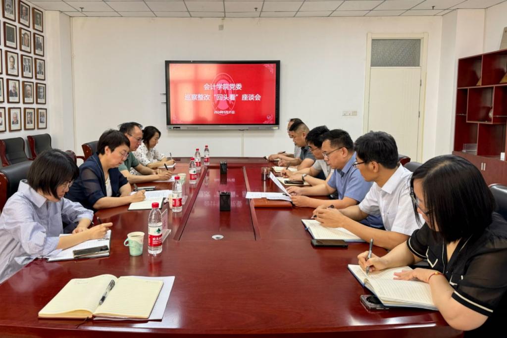 5月31日下午,校党委巡察整改“回头看”工作组在逸夫楼309会议室召开座谈会,反馈巡察整改落实情况。巡察整改“回头看”工作组成员、成人网 领导班子成员参加座谈会。会议由成人网 党委书记邵文涛主持。