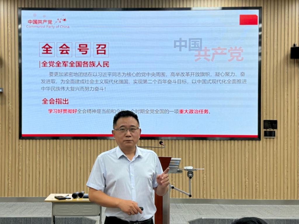 为深入学习贯彻党的二十届三中全会精神,按照学校认真学习宣传贯彻党的二十届三中全会精神的通知要求,进一步统一思想,凝心聚力,9月5日下午,学校宣讲团成员、成人网 党委书记邵文涛为成人网 师生党员讲授学习贯彻党的二十届三中全会精神专题党课。